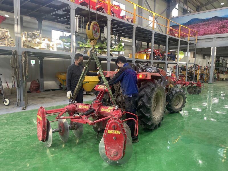 농기계 임대사업장 주말 운영 사진(트랙터 임대를 위해 옥포읍 농기계 임대사업장 찾은 농업인 효율적인 영농을 위한 준비 작업 중). 달성군 제공.