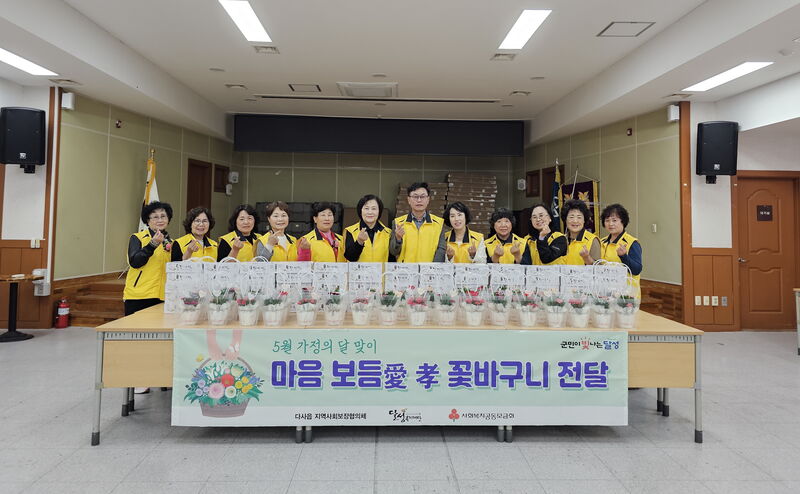 이번 사업은 지역 내 복지 사각지대 해소와 나눔 문화 확산을 위해 평소 다양한 활동을 펼쳐온 다사읍 지역사회보장협의체가 정성껏 마련한 것으로, 위원들이 각 가정을 직접 방문해 꽃바구니와 떡 세트를 전달하며 따뜻한 안부 인사를 전했다.