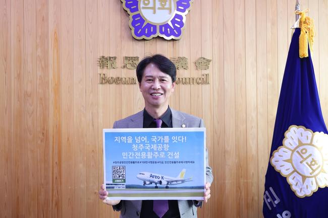 윤대성 의장은 "군의회는 지역의 관광 경쟁력 제고를 위해 청주공항 활성화에 뜻을 함께하겠다"며 "청주공항의 민간 활주로 건설이 보은 관광 발전과 연결되길 바란다"고 밝혔다.
