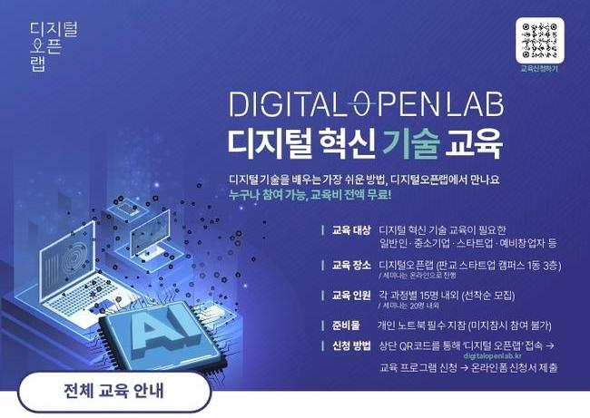 교육 대상은 인공지능과 디지털 신기술에 관심 있는 일반인, 중소기업·스타트업 종사자 또는 예비 창업자로 5월부터 10월까지 판교에 위치한 `디지털오픈랩`에서 진행된다.