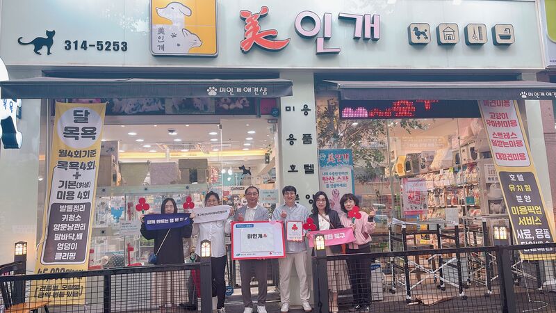 대구 북구 태전2동 ‘미인개 애견숍(대표 강우일)’ 은 매전로 벚꽃거리에 있는 가게로, 사회복지공동모금회 사업의 일환인 ‘착한가게’에 동참하고 협약하여 태전2동 지역사회보장협의체는 착한가게 현판을 전달하고 감사의 뜻을 전했다.