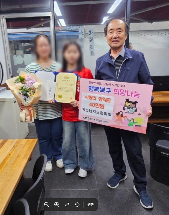 이번 장학금은 한부모 가정에서 세 형제가 함께 생활하며, 밝고 성실하게 학업에 매진하여 관내 또래 청소년들에게 귀감이 되는 장학생에게 전달되었다. 전달식에는 장학생과 보호자, 협의회 회원들이 모두 함께해 따뜻한 응원과 격려의 말을 주고 받으며 의미를 더하였다.