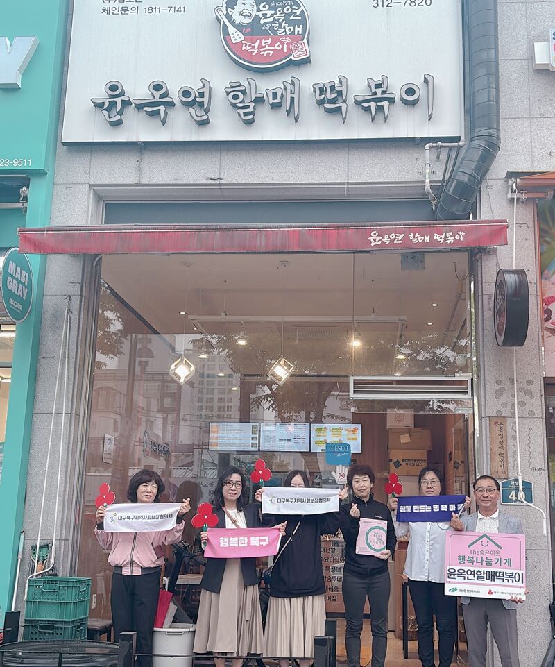 대구 북구 태전2동 매전로 벚꽃거리에 소재한 ‘윤옥연할매떡볶이 매천점(대표 정신영)’은 ‘The 좋은 이웃 행복나눔가게 사업’에 동참하고 매월 떡볶이 식사쿠폰을 기부하기로 협약하여 행복나눔가게 현판을 전달했다.