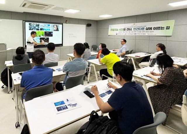 금천구립가산도서관에서 진행한 `길위의 인문학` 강연 모습