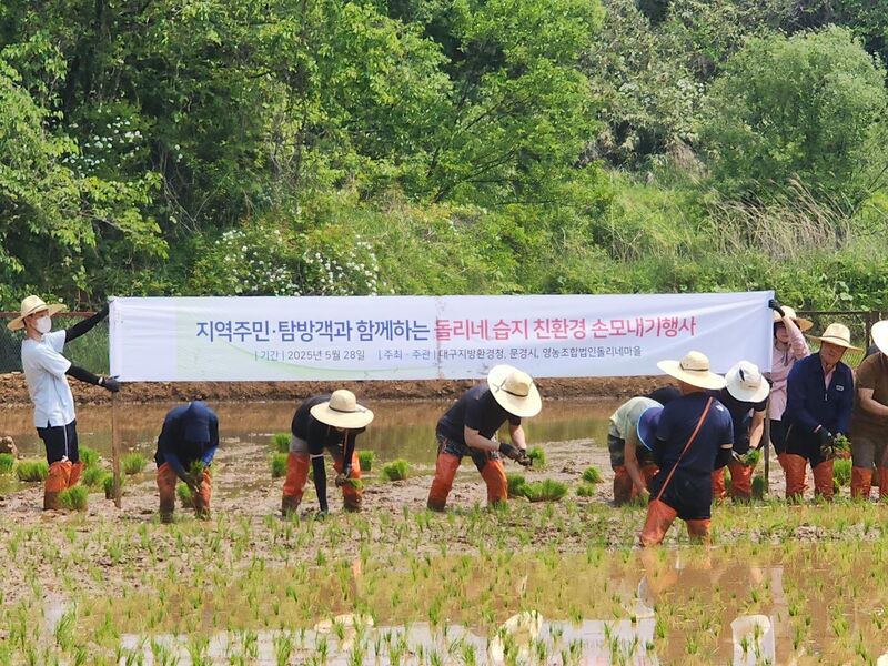 대구환경청, 문경 돌리네 습지에서 전통 손모내기 체험행사 개최 - 지역주민과 학생들이 직접 참여하는 습지보전 체험 활동