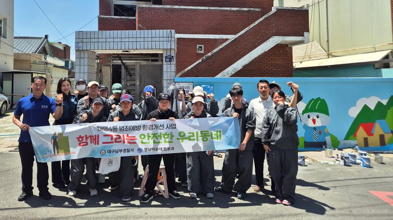 대구남부경찰서는 지난 5월 21일부터 6월 5일까지 범죄예방진단팀, 영남이공대 웹툰과, 대명4동 새마을 부녀회·자율방범대와 함께 남구 대명4동 일대 골목길 벽화 조성을 진행했다고 밝혔다.