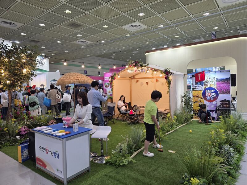 달성군, 서울국제관광전에서 ‘최우수컨텐츠상’ 수상 - 45개국 참가 국제관광박람회서 홍보 콘텐츠 우수성 인정받아 - ‘캠핑장’을 테마로 한 달성군 홍보부스, 관람객들의 시선 집중! - 다양한 관광지, 축제 홍보에 더불어 파크골프 체험 이벤트 진행으로 큰 호응