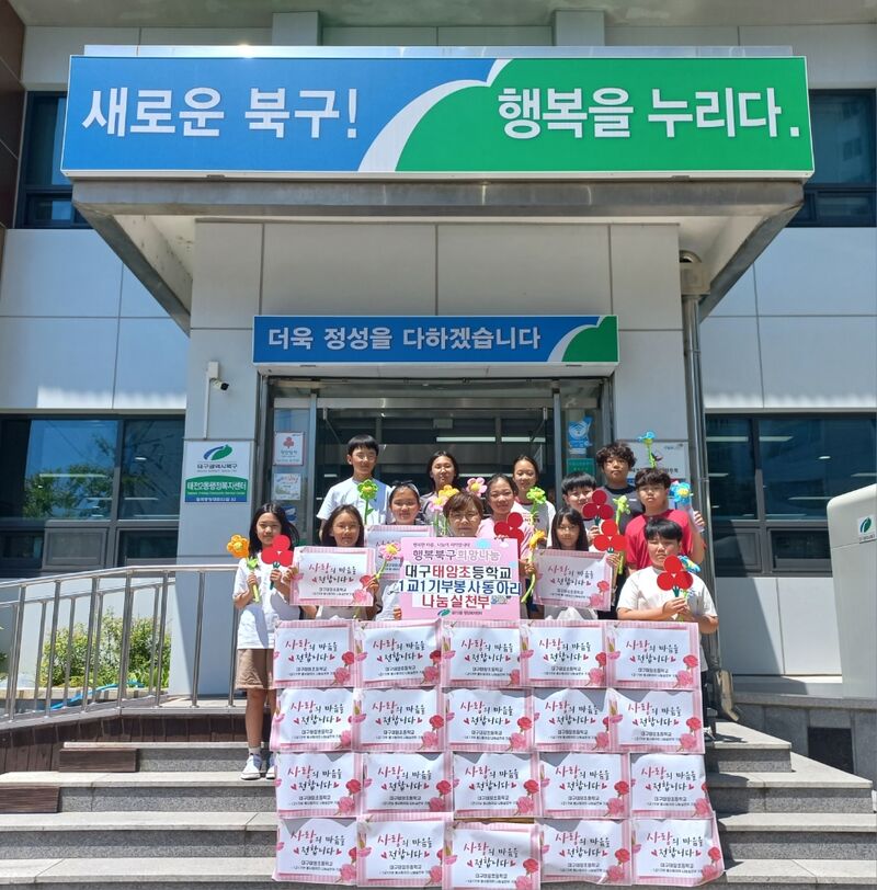 대구태암초등학교 1교1기부봉사동아리 나눔실천부 학생들은 태전2동행정복지센터를 방문하여 라면 20박스를 기부하였으며, 이는 관내 어려운 이웃들에게 전달될 예정이다.