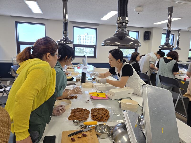 이번 교육은 전통 디저트 만들기 과정으로, 떡잎새월병·구움찰떡·누룽지크리스피 등 3가지 전통 디저트와 지역 특산품인 유가찹쌀을 활용한 약밥 만들기 수업으로 구성됐다.