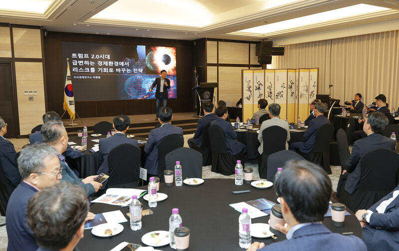 박종훈 소장은 트럼프 관세정책의 나비효과, 중금리 시대의 개막, 가속화될 AI혁명, 에너지 혁명이 바꿀 미래 등을 소개하며 트럼프 2.0시대에 우리 기업들이 어떻게 대응해야 할지에 대해 깊이 있는 인사이트를 전했다.