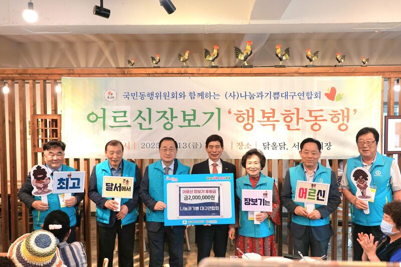 이태훈 달서구청장은 “따뜻한 나눔을 실천해주신 나눔과 기쁨 대구연합회에 깊이 감사드리며, 오늘 하루가 어르신들께 특별한 추억이 되었기를 바란다”며 “앞으로도 모두가 함께 행복한 달서 공동체를 만들어 나가겠다”고 밝혔다.