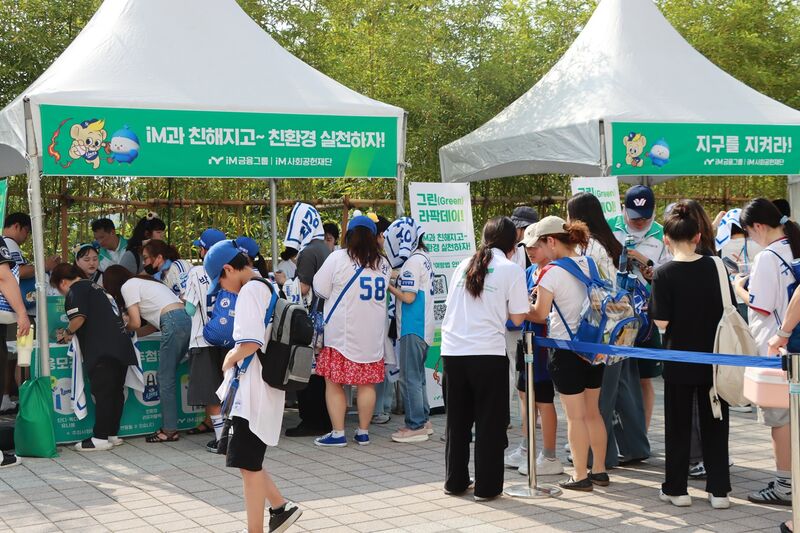 특히 경기장 외부에서는 iM대학생봉사단과 임직원들이 관중들을 대상으로 게임을 통해 환경의 소중함을 인식하고 환경보호 실천을 약속하는 다양한 ESG 부스 프로그램을 운영했으며, 참가자들에게는 iM 브랜드 굿즈와 삼성라이온즈에서 제공한 굿즈가 증정돼 높은 참여도를 보였다.