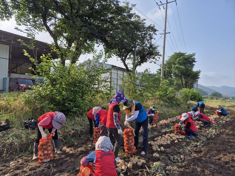 달성군여성자원봉사단, 유가읍 농가 찾아 양파 수확 지원 - 여성자원봉사자 35명, 농번기 농가에 따뜻한 손길 - 도농복합 달성군의 특성 살린 봉사로 지역 연대 강화 - 달성군자원봉사센터, 지속적인 자원봉사로 농촌 활력 도모