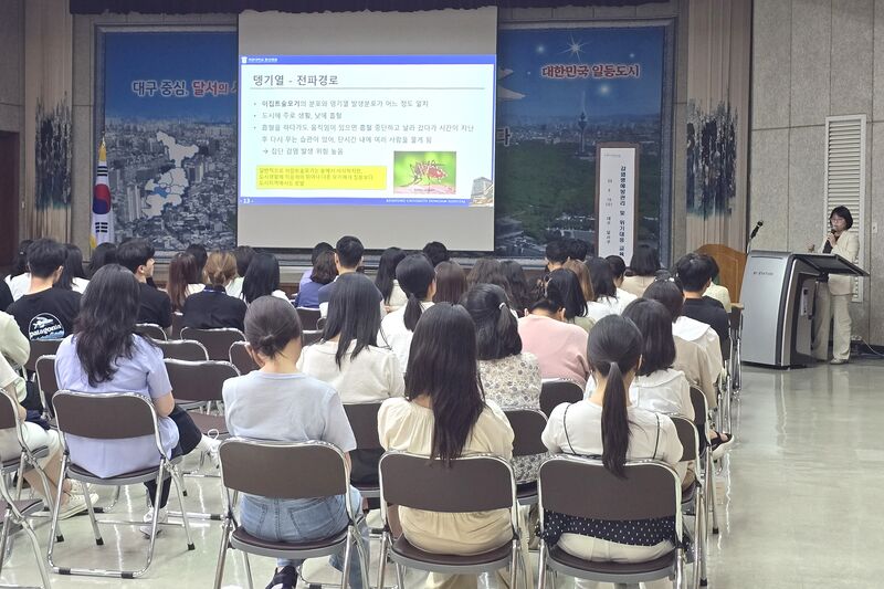 특히, 달서구보건소가 2025년 대구시로부터 「지역거점 뎅기열 예방관리사업」의 거점 보건소로 지정된 만큼, 이번 교육에서는 해외 유입 모기매개 감염병에 대한 예방과 대응 방안이 집중적으로 다뤄졌다.