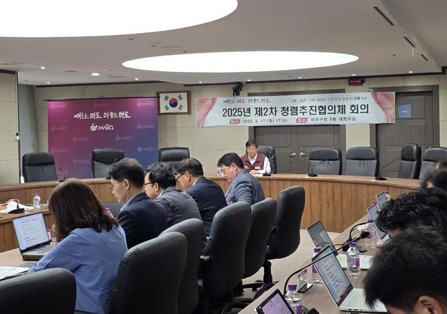 마포구(구청장 박강수)는 6월 17일 마포구청 대회의실에서 2025년 제2차 청렴추진협의체 회의를 개최하고, 청렴 시책 추진 상황을 점검하며 실효성 있는 반부패·청렴 정책에 대해 논의했다.