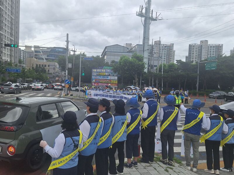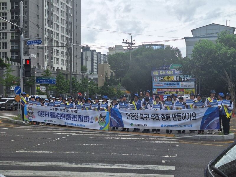 한국자유총연맹 북구지회(회장 최용원)는 6. 20.(금) 아침 한국자유총연맹 북구지회 회원 40여 명이 모인 가운데 북구 모범운전자회의 교통지도 봉사 구간인 성북교 일원에서 살기 좋은 북구를 위해 묵묵히 봉사하는 교통지도 봉사자에 대한 감사의 마음을 표현함과 더불어, 상호 존중하는 사회 분위기 조성을 위한 교통질서 확립 감사캠페인을 실시했다.