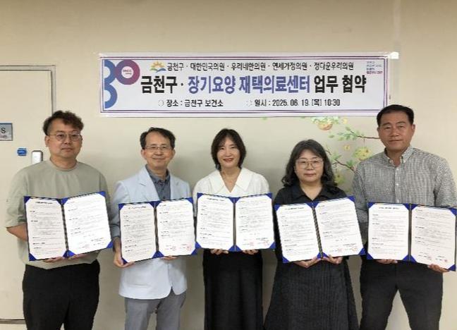 금천구(구청장 유성훈)는 지난 19일 금천구청에서 장기요양 재택의료센터 4개 기관과 업무협약을 체결했다고 밝혔다.