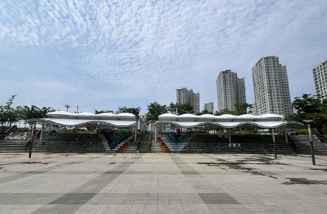 하남시, 미사호수공원 계단광장에 조형쉐이드 추가...쉼터 환경 개선