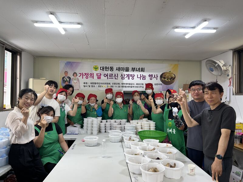 대현동 새마을부녀회·협의회에서는 가정의 달을 맞이해 정성스럽게 준비한 삼계탕과 수박, 떡 400인분을 관내 경로당 및 저소득 취약계층에게 전달했다.