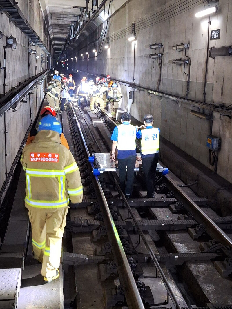 트로리를 이용한 인명구조 모습. 대구교통공사 제공.