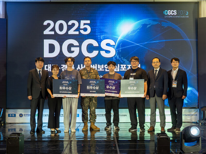 이날 함께 열린 ‘대구·경북 사이버공격 방어대회 2025’는 실시간 정보 보안 위협 방식의 실습 대회로, 총 60여 명의 지역 대학(원)생과 공공기관 재직자들이 참여해 치열한 해킹·방어 경쟁을 펼치며 정보보호 실전 역량을 겨뤘다.