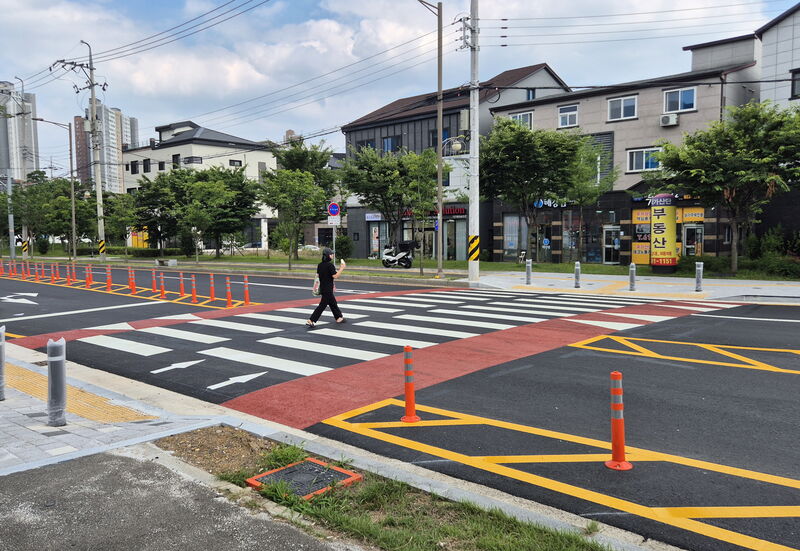 이에 군은 비효율적인 교통체계를 개선하고 사고 위험을 낮추기 위해 회전교차로를 도입하는 동시에, 진입 전 횡단보도 일부를 고원식으로 교체했다. 진입 전 설치된 고원식 횡단보도와, 교통섬을 중심에 두고 회전하도록 설계된 회전교차로의 구조는 차량의 자연스러운 감속을 유도해, 교통 흐름 개선과 보행자 안전 확보에 특히 효과적일 것으로 예상된다.