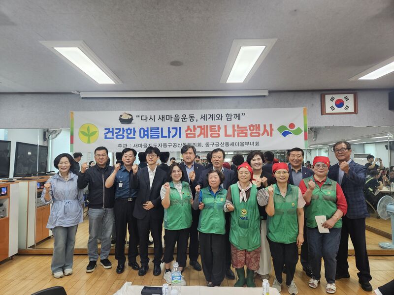 대구 동구 공산동 새마을지도자협의회(회장 전성진)와 새마을부녀회(회장 우명순)는 지난 6월 30일, 초복을 앞두고 동 행정복지센터에서 지역 어르신들을 위한 ‘건강한 여름나기 삼계탕 나눔 행사’를 개최했다.