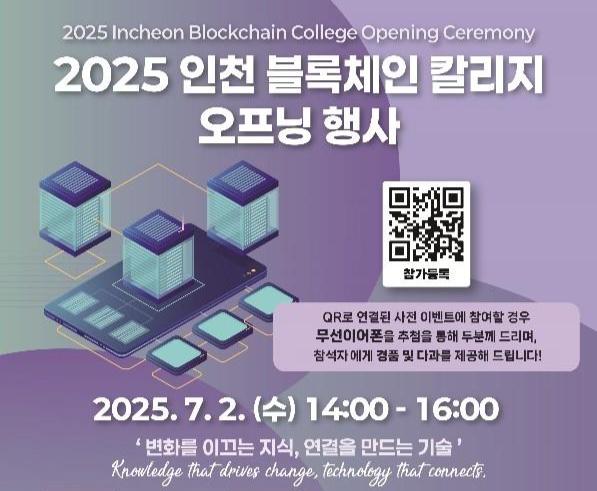 인천광역시(시장 유정복)는 7월 2일 국립 인천대학교 학산도서관에서 지역 블록체인 인재 양성과 기술역량 강화를 위한 `2025 인천 블록체인 칼리지` 오프닝 행사를 성황리에 개최했다고 밝혔다.