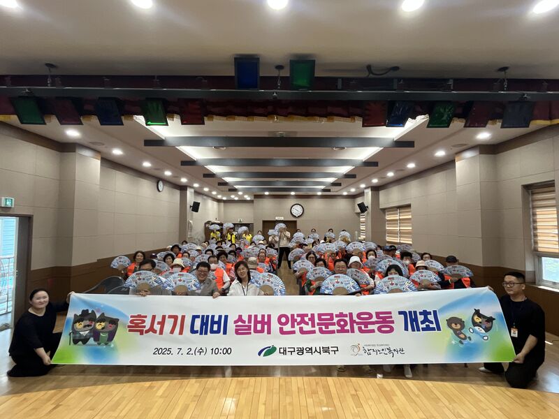 대구 북구청(청장 배광식)은 7월 2일(수) 함지노인복지관에서 안전취약계층인 어르신 100여명을 대상으로 폭염 대비 안전사고 및 보이스피싱 예방과 안전의식 제고를 위해 ‘실버 안전문화운동’을 개최하였다.