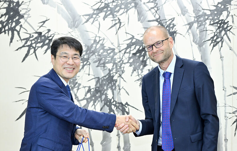 (좌)김정기 대구광역시장 권한대행 행정부시장, (우)유리 예르비아호(Jyr i Järviaho) 주한핀란드대사. 대구광역시 제공.