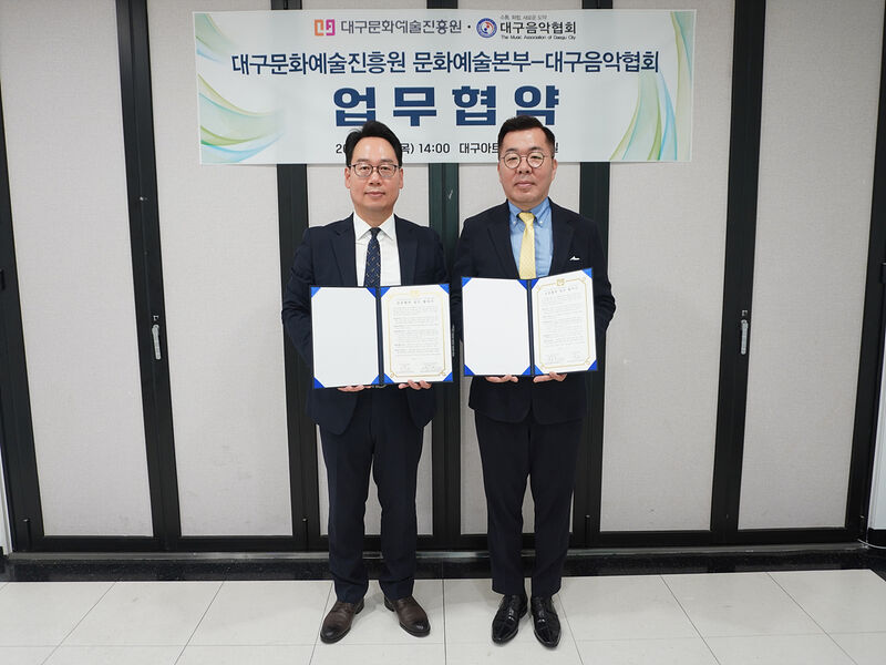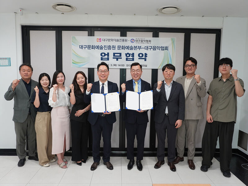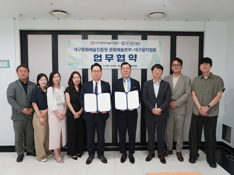 (재)대구문화예술진흥원(원장 박순태, 이하 진흥원)과 대구음악협회(이하 음악협회)가 7월 3일(목) 업무협약을 체결했다.