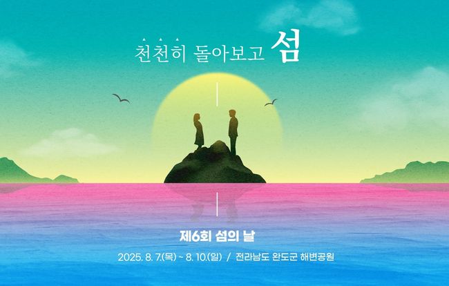 한편, 올해 제6회 섬의 날 행사는 8월 7일부터 10일까지 전라남도 완도군 해변공원 일대에서 열린다. ‘천천히 돌아보고 섬’을 주제로 섬 치유 전시관, 걷기 프로그램, 어린이 아카데미, 섬 그림 그리기대회 등 체험형 콘텐츠와 학술행사 등이 다채롭게 진행될 예정이다.