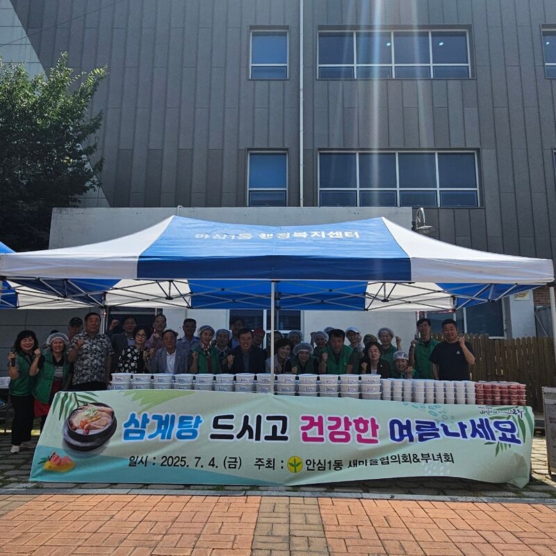 안심1동 새마을지도자협의회(회장 이인욱)·새마을부녀회(회장 심이순)는 지난 4일, 동 행정복지센터에서 ‘초복맞이 삼계탕 나눔 행사’를 개최했다.
