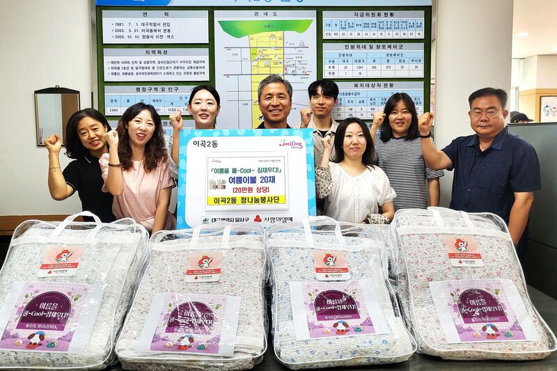 대구 달서구 이곡2동(동장 박성준)은 공무원으로 구성된 정나눔봉사단이 모금한 후원금으로 구입한 여름이불을 관내 취약계층 가정에 직접 전달했다고 6일 밝혔다.