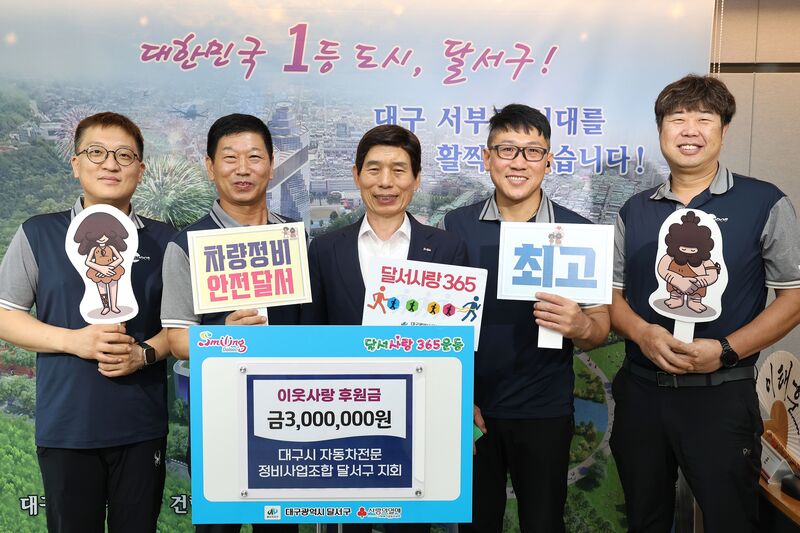 이태훈 달서구청장은 “꾸준한 나눔을 실천해온 대구시 자동차전문정비사업조합 달서구지회에 깊은 감사를 드린다”며 “기탁해주신 후원금은 취약계층 아동들을 위한 사업에 잘 쓰이도록 하겠다”고 전했다.