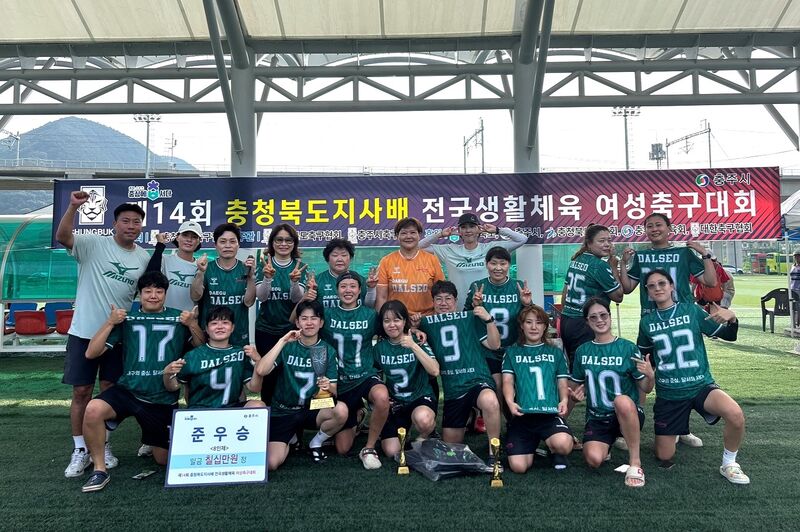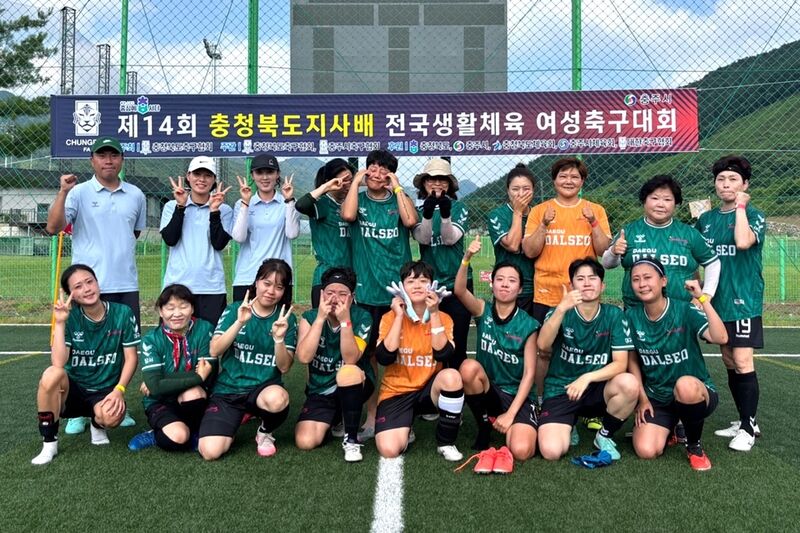 대구 달서구(구청장 이태훈) 여성축구단(단장 최경애)이 지난 7월 5일부터 6일까지 충북 충주시 수안보생활체육공원에서 열린 제14회 충청북도지사배 전국생활체육 여성축구대회에 참가해, 준우승을 차지하며 지역의 명예를 드높였다.