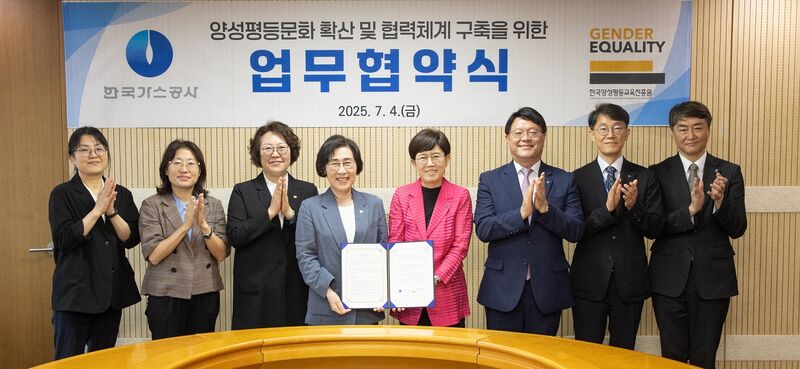 양성평등 문화 확산을 위한 업무협약식. 한국가스공사 제공.최연혜 가스공사 사장은 “가스공사는 10년 연속으로 여성가족부 ‘가족친화인증’을 달성하는 등 우수한 일·가정 양립 제도를 운영해 왔다”며, “이번 협약은 가스공사가 양성평등을 선도하는 대표 기업으로 한 단계 더 도약하는 계기가 될 것”이라고 말했다.