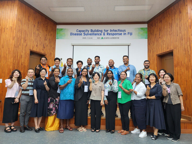 대구광역시 보건환경연구원은 7월 9일(수) 연구원에서 피지 지역 보건부 고위급 관리자들에게 연구원의 역할을 소개하고, 생물안전연구동 감염병 검사 연구시설 견학 기회를 제공했다.