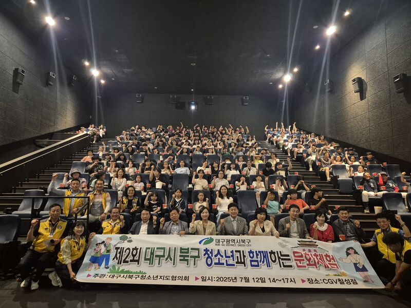 대구북구청소년지도협의회(회장 남기태)가 지역 청소년들과 청소년 지도위원들을 대상으로, 7월 12일 14시 토요일 CGV대구(칠성동)에서 “2025년 하계 행복 북구 청소년 수련대회”를 개최하였다.
