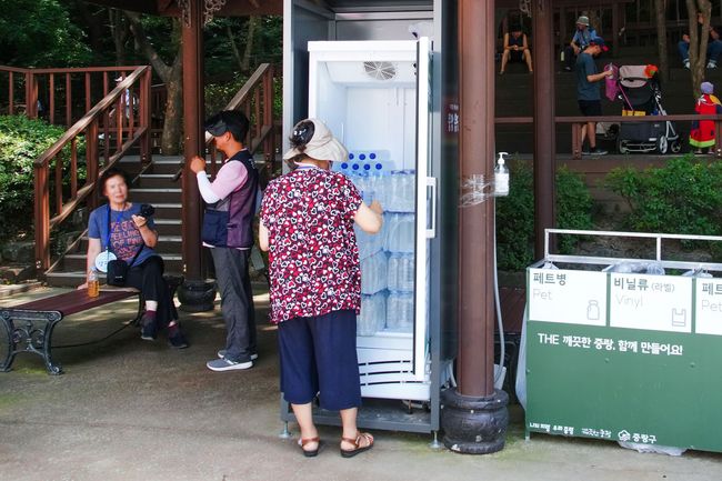 중랑구가 폭염 장기화에 대비해 7월 15일부터 8월 18일까지 관내 9곳에 생수 냉장고 ‘중랑옹달샘’을 설치하고 본격적인 무더위 쉼터 운영에 들어간다.중랑구 관내 생수 냉장고 `중랑옹달샘`을 이용하는 시민의 모습.