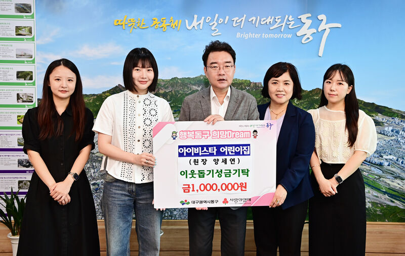 윤석준 동구청장은 “무더운 여름철에 아이들의 따뜻한 마음이 취약계층에게 큰 힘이 될 것”이라며 “소중한 성금이 어려운 이웃에게 잘 쓰일 수 있도록 하겠다.”고 말했다.