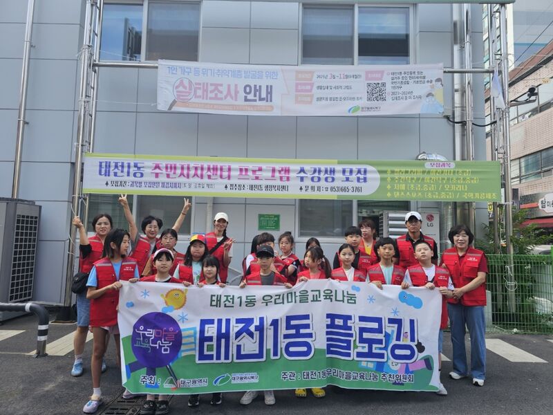 대구 북구 태전1동 우리마을교육나눔 청소년들은 지난 7월 12일(토) 태전1동 관내에서 플로깅 및 네프론 교육을 실시하였다.