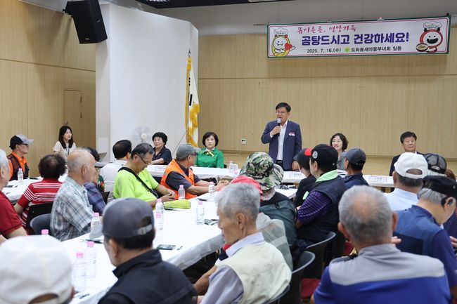 박강수 마포구청장이 식사에 앞서 어르신들에게 인사를 전하고 있다이날 행사는 도화동 새마을부녀회가 주관했으며, 관내 취약계층 및 홀몸 어르신 80명을 대상으로 건강한 여름나기를 응원하는 취지로 마련됐다. 정성 어린 곰탕과 과일, 떡 등이 제공됐으며, 더운 날씨에도 불구하고 어르신 50여 명이 현장을 찾아 따뜻한 식사를 함께했다.
