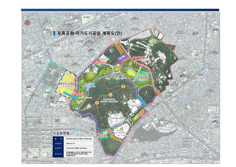 이에 대구광역시는 대표 도심공원인 두류공원을 ‘전국 최초, 1호 국가도시공원’으로 지정받기 위해 중앙부처와 지역 국회의원을 지속적 으로 방문해 사업의 필요성과 당위성에 대해 적극 설명하고 있다.
