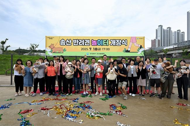 의정부시(시장 김동근)는 7월 18일 민락1저류지 내(낙양동 764)에서 `송산 반려견 놀이터` 개장식을 개최했다.