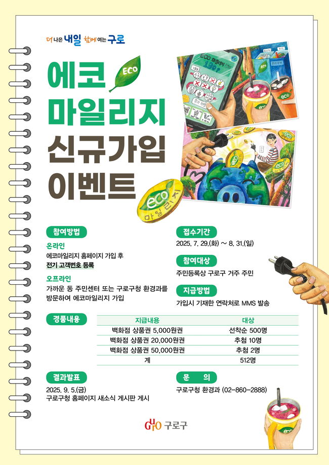 에코마일리지는 생활 속 에너지 사용량을 절감해 탄소배출을 줄이고, 그에 대한 보상으로 마일리지를 적립받을 수 있는 제도로 서울시와 자치구가 공동으로 운영 중이다. 구는 이번 이벤트를 통해 제도 참여율을 높이고 지역 차원의 기후위기 대응 기반을 강화할 계획이다.
