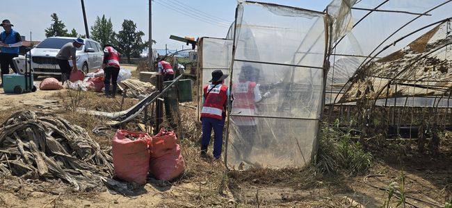 구로구 자원봉사단이 수해 피해 농가의 비닐하우스를 정리하고 있다.봉사활동은 7월 25일 서울시자원봉사센터의 긴급지원 요청에 따라 구로구자원봉사협력단과 바로봉사단 등이 참여해 신속하게 추진됐다.