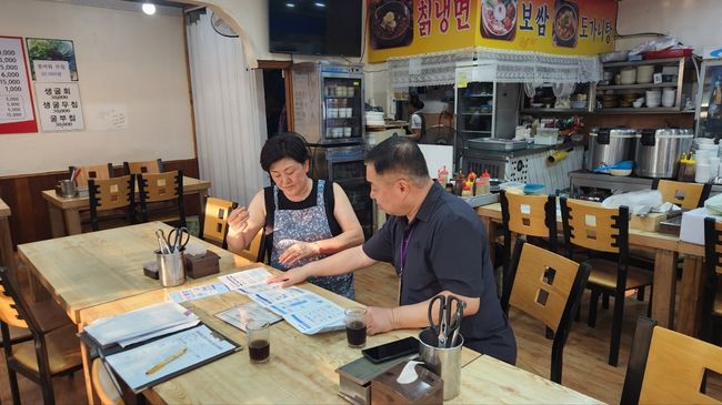 점검반이 수산물 취급 음식점 대상으로 수산물 원산지 표시 점검을 진행하고 있다.