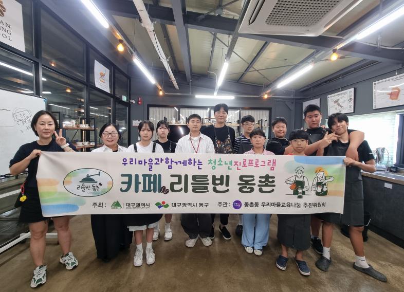 ‘리틀빈 동촌’은 청소년 6명이 바리스타 교육을 받고 직접 카페를 운영해보는 체험 중심의 진로탐색 프로그램으로, 지역 상점인 ‘보스턴 커피’를 통해 장소와 장비를 지원받은 청소년들이 직접 내린 커피를 지역 지구대와 119안전센터에 전달하는 등 뜻깊은 활동이 이뤄졌다.