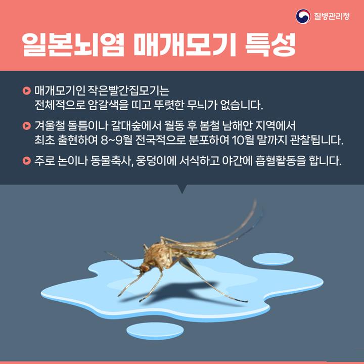 지난 3월 27일에 일본뇌염을 전파하는 ‘작은빨간집모기’가 제주와 전남지역에 채집되면서 전국에 일본뇌염주의보가 발령됐다. 대구에서는 동구 금강로 소재 우사에 설치된 유문등에서 지난 6월 5일, 매개모기가 올해 처음으로 확인됐다.